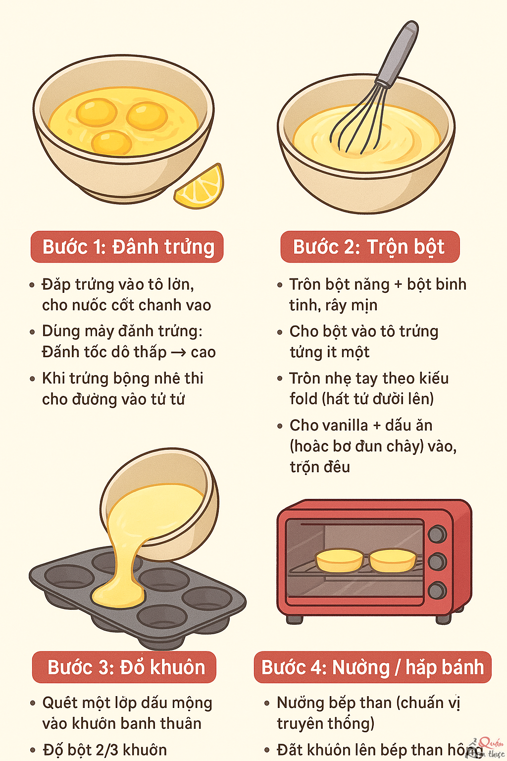 Nước cốt chanh: 1 muỗng cà phê (giúp trứng bông hơn)
